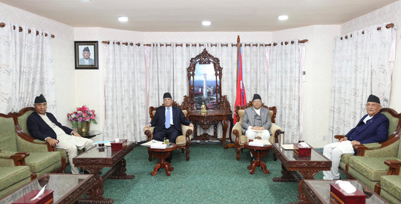 सभामुखको कार्यालय सिंहदरबारमा उनीहरूबीचमा शनिबार दिउँसो भेटवार्ता भएको हो। प्रतिनिधिसभाको कामकारबाही लगायतका विषयमा छलफल गर्न सभामुख घिमिरेको पहलमा तीन दलका शीर्ष नेताहरूबीच छलफल भएको हो।