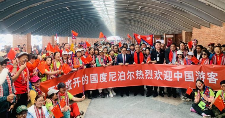 काठमाडौं । नेपाली नयाँ वर्षको पूर्वसन्ध्यामा नेपाल भ्रमणमा आएका चिनियाँ पर्यटकहरुलाई त्रिभुवन अन्तर्राष्ट्रिय विमानस्थलमा पञ्चेबाजासहित स्वागत गरिएको छ । चिनियाँ पर्यटकहरुलाई संस्कृति पर्यटन तथा नागरिक उड्डयन मन्त्री सुदन किराँती, नेपालका लागि चिनियाँ राजदूत छेन् सङ लगायतले खादा माला लगाइदिएर स्वागत गरे ।