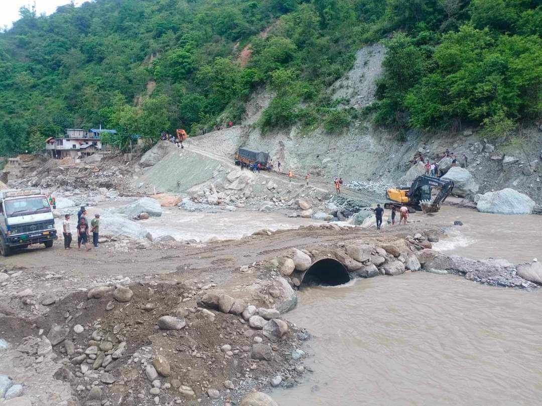 काठमाडौं, असार १८- भौतिक पूर्वाधार तथा यातायातमन्त्री प्रकाश ज्वालाको स्थलगत अनुगमन पस्चात् मेची राजमार्गको ताप्लेजुङमा सवारी आवगमन सुचारु भएको छ । गत असार ३ गते आएको अबिरल बर्षापछि गएको वाढीले पाँचथर र ताप्लेजुङ जिल्लामा करिव ५० करोड बराबरको क्षती भएको थियो । पुल बगाएको ठाँउमा पेनस्टक पाईपको प्रयोग गरी यातायात संचालन गरिएको हो ।