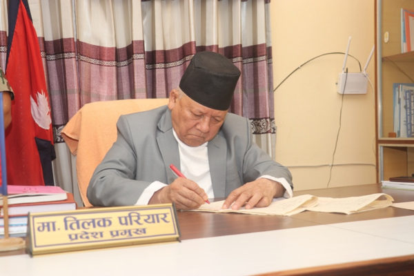 प्रदेश प्रमुख परियारले ‘कर्णाली प्रदेश प्रशिक्षण प्रतिष्ठान (स्थापना र सञ्चालन) सम्बन्धमा व्यवस्था गर्न बनेको विधेयक’लाई नेपालको संविधानको धारा २०१ को उपधारा ९२० बमोजिम बिहीबार प्रमाणीकरण गरका हुन् ।