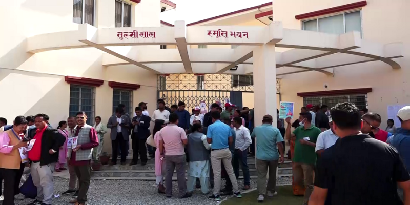 मतदान सुरु गर्ने भाका सरेको सर्यै गर्दा कार्यकर्ताहरु पार्टी कार्यालय परिसरमा अलपत्र परेका थिए ।