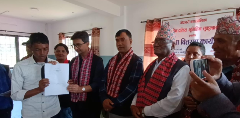 पाटन, असाेज १९- राष्ट्रिय भूमि आयोग जिल्ला समिति ललितपुरले गोदावरी नगरपालिका–९ छम्पीका भूमिहीन सुकुम्बासीलाई निस्सा वितरण गरेको छ ।