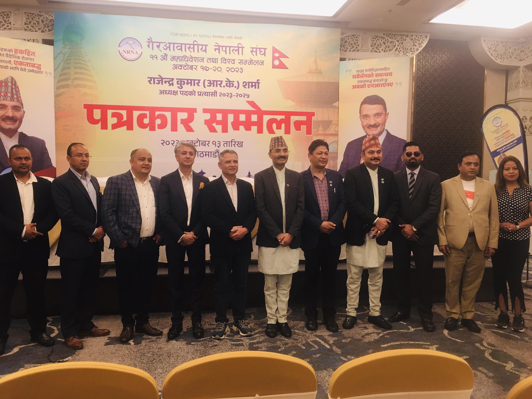काठमाडौं, असोज २६- गैरआवासीय नेपाली संघ (एनआरएनए) को आगामी कार्यकाल (२०२३–०२५) का लागि वर्तमान उपाध्यक्ष राजेन्द्रकुमार (आर.के.) शर्माले २४ महिनाका लागि २४ बाचासहित अध्यक्ष पदका लागि आफ्नो उम्मेदवारी घोषणा गरेका छन् ।