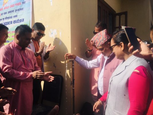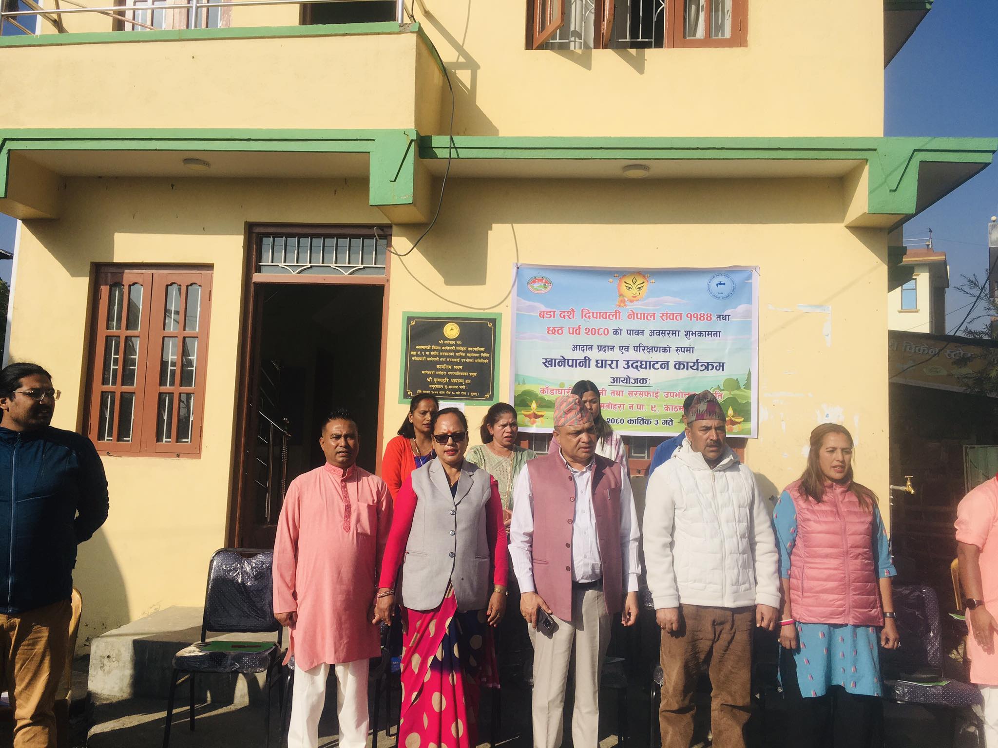 शुक्रबार एक कार्यक्रमकाबीच नगरपालिकाका मेयर उपेन्द्र कार्कीले जडान गरिएका धाराको टुटी खोलेर एकसाथ पानी पठाउदै उद्घाटन गरेका छन् ।