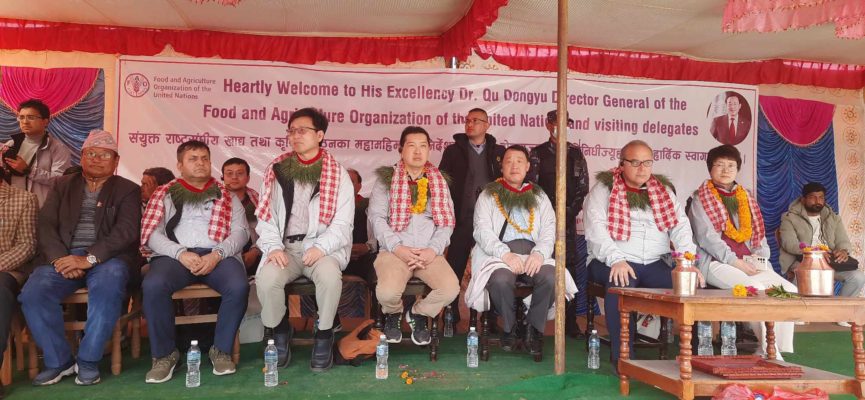 काठमाडौं, पुस २८- संयुक्त राष्ट्रसंघीय खाद्य तथा कृषि संगठनका महानिर्देशक डा. क्यू डोङ्ग्यूले कृषि फार्मको अवलोकन गरेका छन् । काभ्रे जिल्लाको मण्डनदेउपुर नगरपालिका वडा नम्बर- ८, मा रहेको कृषि फार्मको शनिबार अवलोकन गरेका हुन् ।
