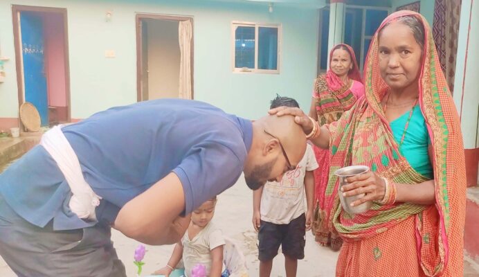 वर्षभरि शीतलता, सुख, समृद्धि, शान्ति, दीर्घायु एवम् उत्तरोत्तर प्रगति होस् भन्ने कामना गर्दै अग्रज एवं मान्यजनले आफूभन्दा सानालाई शिर (टाउको)मा जल थपथपाएर आशीर्वाद दिने चलन छ ।