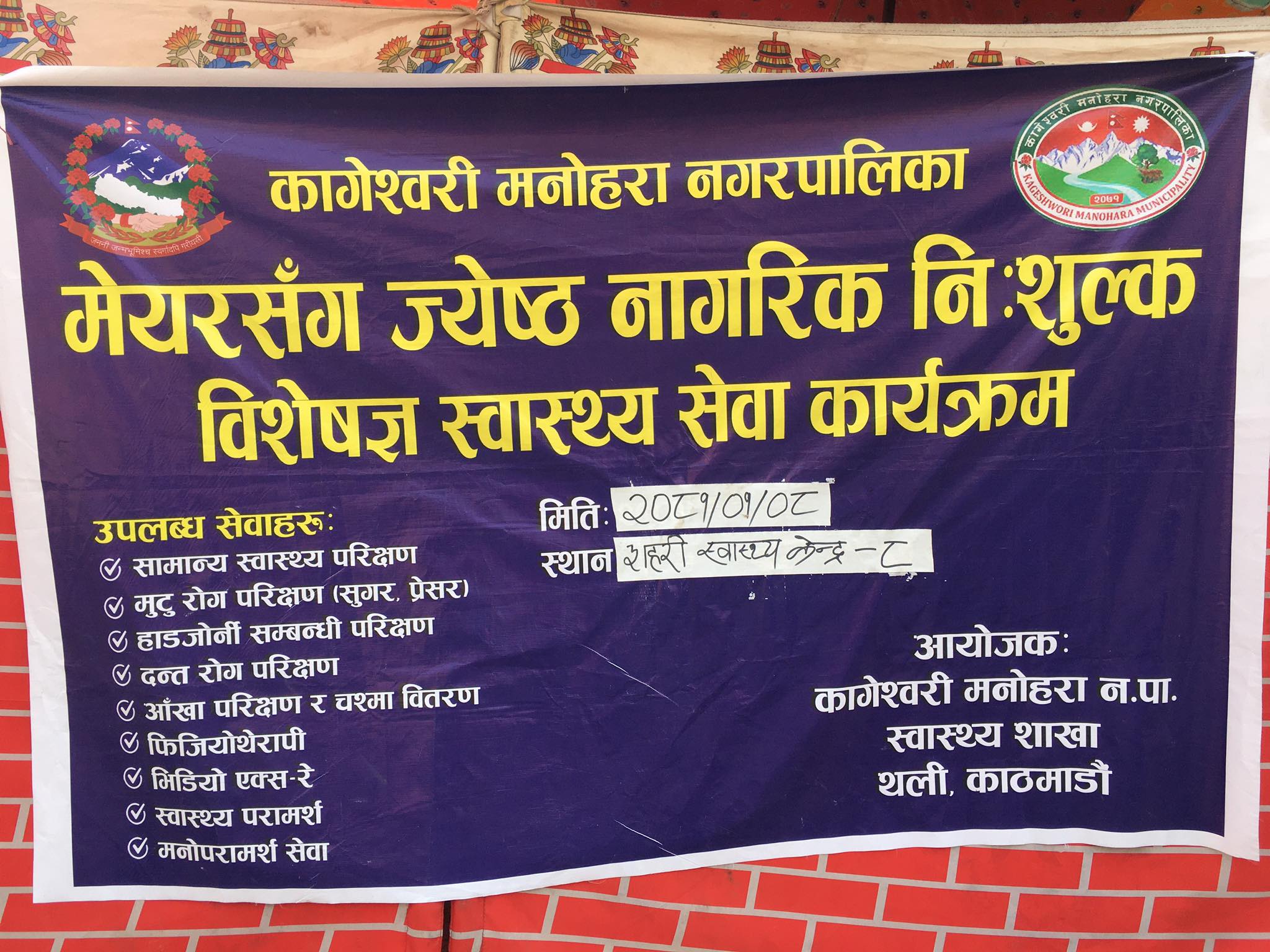 स्वास्थ्य सेवा कार्यक्रम वडा कार्यालय परिसर तथा शहरी स्वास्थ्य केन्द्र भवन तेजविनायकमा बिहान १० बजदेखि ४ बजेसम्म संचालन भएको थियो ।