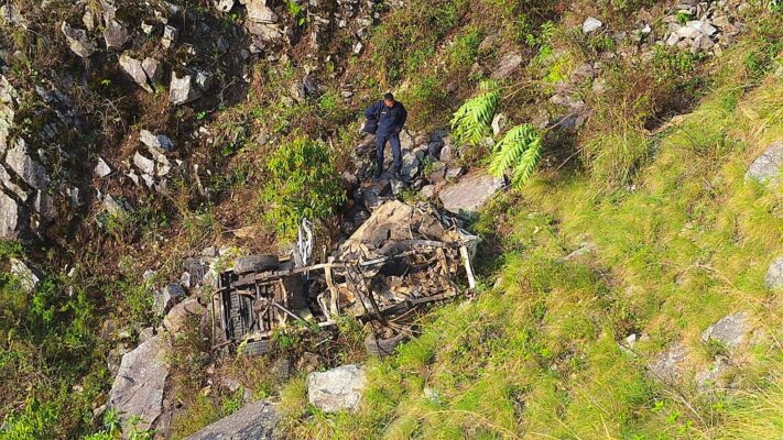 प्रहरीका अनुसार जिप सडकबाट ४ सय मिटर तल खसेको छ । जिप बिहीबार बिहान दुई बजेतिर दुर्घटना भएको भएपनि ढिलो गरी मात्रै थाह भएकाले यतिबेला प्रहरी घटनास्थलमा पुगेर उद्धार कार्य गरिरहेको छ ।