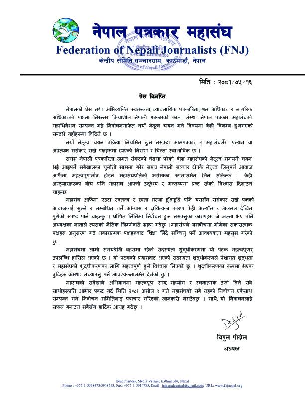 पत्रकार महासंघकाे चुनाव असोज ५ गते