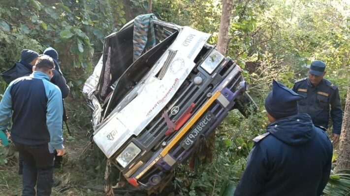 चालकलाई प्रहरीको नियन्त्रणमा रहेको छ । प्रहरीका अनुसार गाडीमा १४ जना सवार रहेका थिए । तीव्र गतिका कारण गाडी दुर्घटनामा परेको हुन सक्ने आंकलन प्रहरीको छ ।