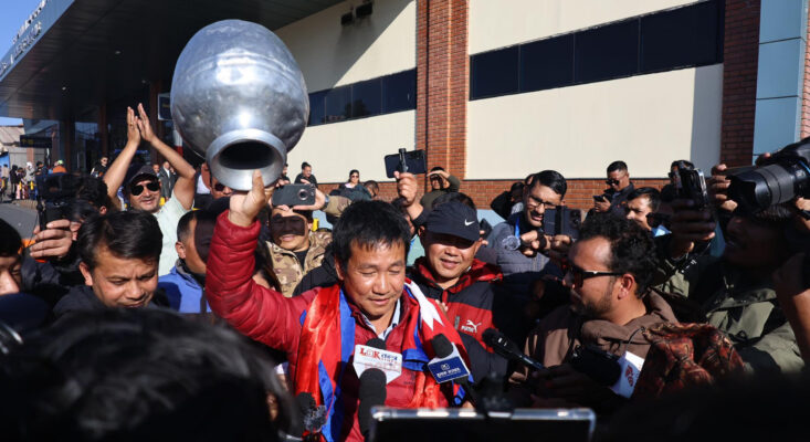काठमाडौं । धरान उपमहानगरपालिकाका मेयर हर्क साम्पाङ रित्तो गाग्री बोकेर काठमाडौं आइपुगेका छन् ।