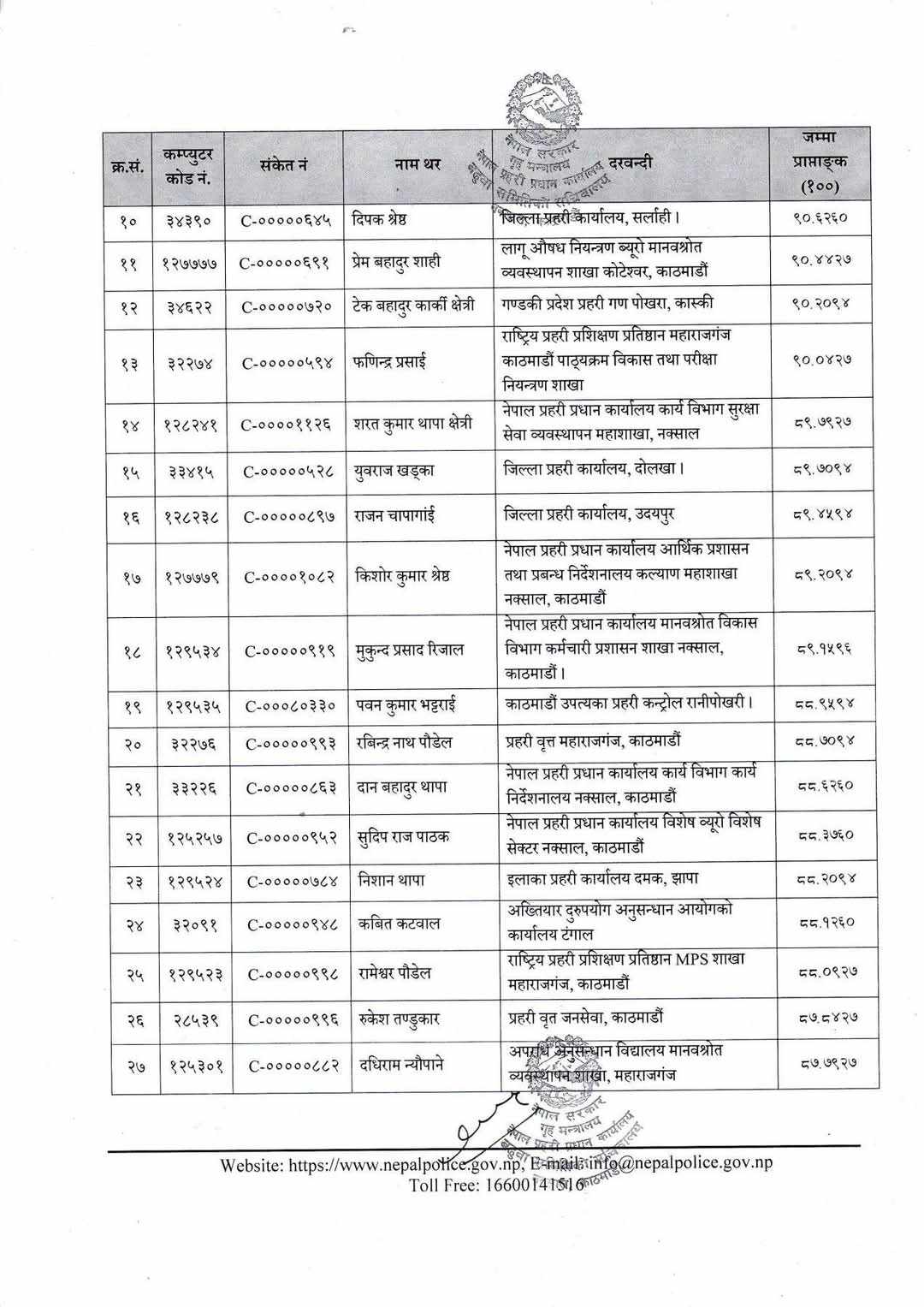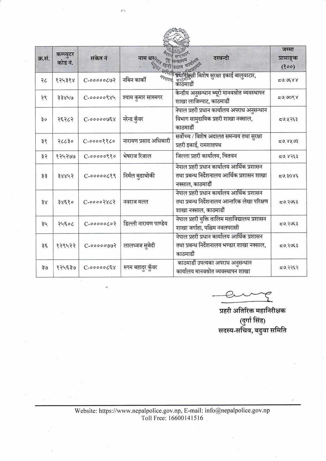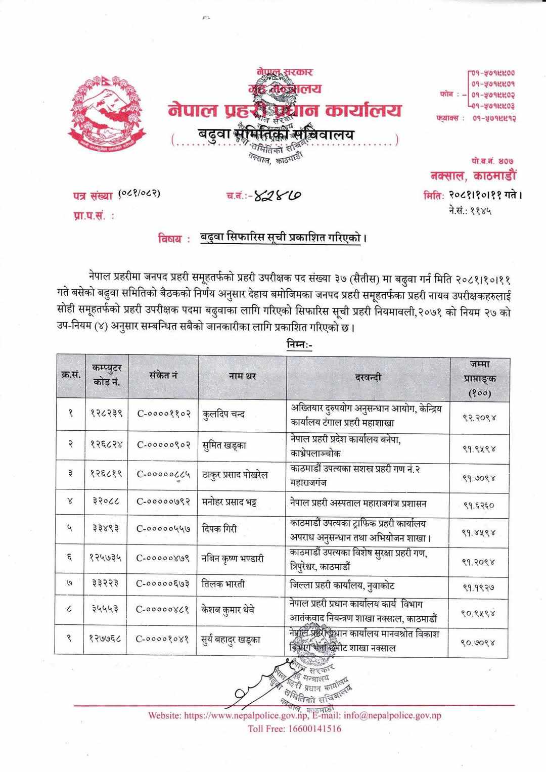 प्रहरी नियमावली, २०७१ को नियम २७ को उप–नियम ९४०० अनुसार हिजो शुक्रबार बसेको बढुवा समितिको बैठकले उनीहरूको बढुवा सिफारिस गरेको हो ।