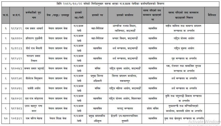 सरुवा सूचीअनुसार अर्थ मन्त्रालयसहित विभिन्न मन्त्रालयका सहसचिवको सरुवा गरिएको छ । प्राविधिक मन्त्रालय तथा सेवाका सहसचिवको पनि सरुवा भएको छ ।