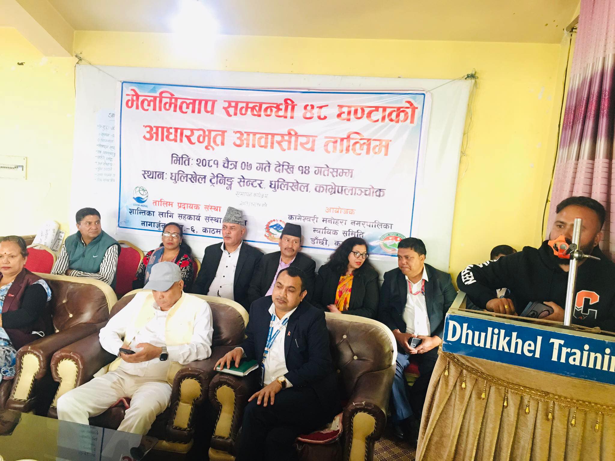 नगरपालिकाको न्यायीक समितिको आयोजनामा गत बिहिबारदेखी धुलिखेलको एक होटलमा आवशीय तालिम सुरु भएको थियो । आठ दिनसम्म चलेको उक्त (४८ घण्टे) तालिम बिहिबार सम्पन्न भएको हो ।