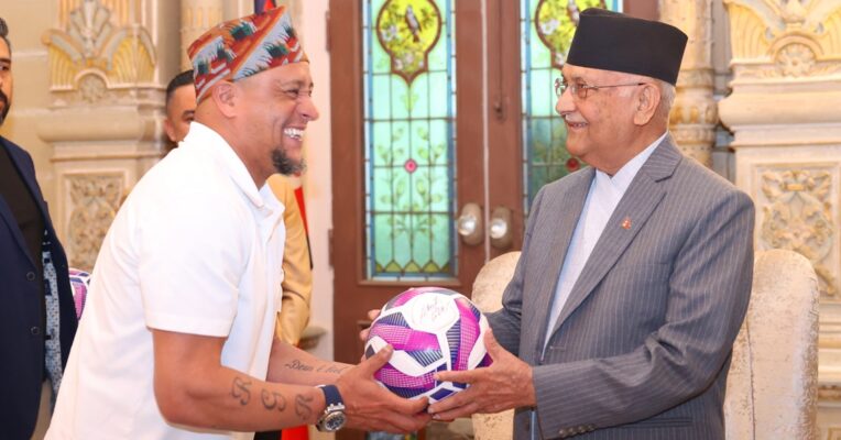 काठमाडौं । प्रधानमन्त्री केपी शर्मा ओली र ब्राजिलका चर्चित फुटबलर रोबर्टो कार्लोसबीच आज भेटघाट भएको छ।