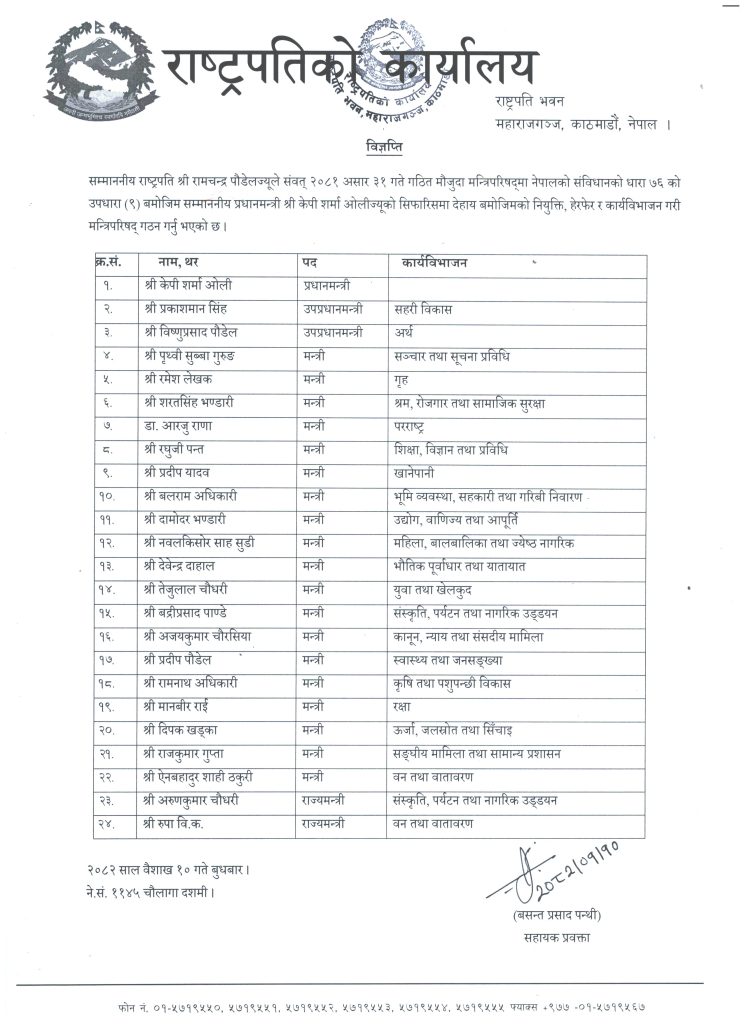 शपथको समय भने तय भइनसकेको स्रोतले बतायो । मन्त्री नियुक्त भएका पन्त एमालेका समानुपातिक सांसद हुन् ।