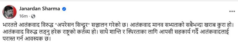 भारतले पाकिस्तानविरुद्ध ‘अपरेसन सिन्दूर’ अभियान सञ्चालन गरेको बेला पूर्वमन्त्री समेत रहेका शर्माको यो भनाइ सार्वजनिक भएको हो । उनले आपसी सहकार्य गर्दै आतंकवादलाई परास्त गर्न आवश्यक रहेको बताएका छन् ।