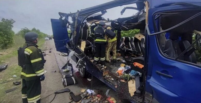 युक्रेनले मिनिबसमा भएको आक्रमणलाई युद्ध अपराध भनेको छ । रुसी संचारमाध्ययमहरुले सैन्य लक्षित आक्रमण बताए पनि रुसी रक्षा मन्त्रालयले कुनै प्रतिक्रिया दिएको छैन ।