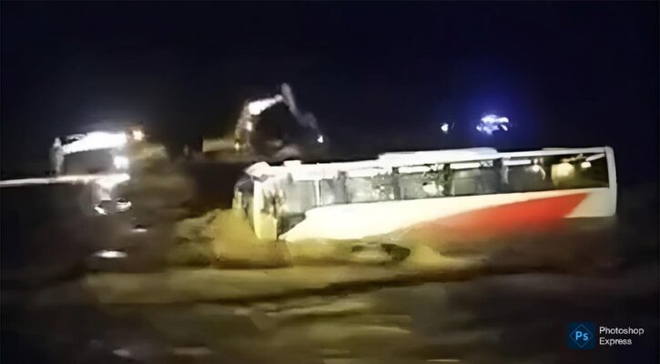 ३८ जना यात्रु सवार भे १ ख ४०८५ नम्बरको बस गएराति करिब ११ बजेतिर बाढीले बगाएको हो।