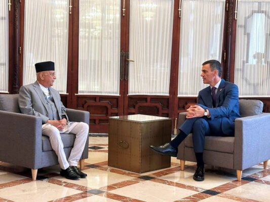 काठमाडौं । संयुक्त राष्ट्रसंघको ‘विकासको लागि वित्त’ सम्बन्धी चौथो अन्तर्राष्ट्रिय सम्मेलनमा सहभागी हुन स्पेन गएका प्रधानमन्त्री केपी शर्मा ओली र स्पेन सरकारका अध्यक्ष (प्रधानमन्त्री) पेड्रो साञ्चेजबीच भेटवार्ता भएको छ।