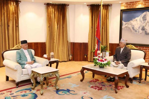 काठमाडौं । प्रधानमन्त्री केपी शर्मा अोली र राष्ट्रपति रामचन्द्र पौडेलबीच भेटवार्ता भएको छ ।