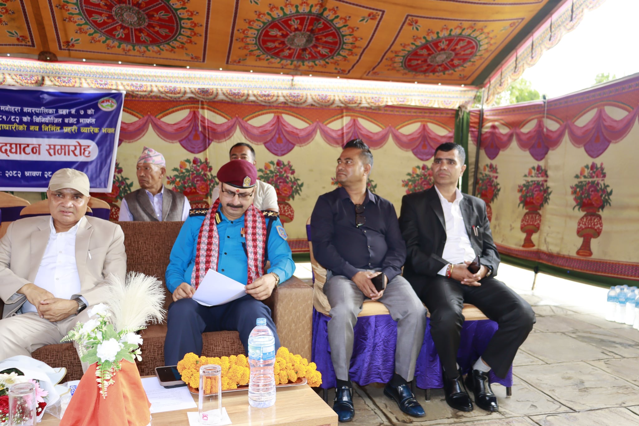 कार्यक्रममा प्रमुख अतिथि रहेका कार्कीले निर्माण कार्यमा सहयोग गर्ने भवन निर्माण गर्ने कम्पनी र समितिको प्रशंसा गरे । प्रमुख कार्कीले प्रहरी र नगरबासीहरुको सम्बन्ध सुमधुर बन्दै गएको भन्दै यहाँ खटिएका प्रहरीहरुलाई उच्च मनोबलका साथ काम गर्न आग्रह गरे । प्रहरीलाई नगरपालिकाले सवारीसाधन मर्मत र तेल खर्च प्रदान गर्दै आइरहेको जानकारी दिँदै आवश्यक पर्ने भौतिक पूर्वाधारहरुको छलफल गरेर परिपूर्ति गर्ने बताए ।