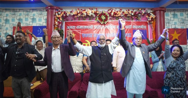 बिहीबार काठमाडौंमा आयोजित एक कार्यक्रमबीच जसपा अध्यक्ष अशोक राई र राष्ट्रिय मुक्ति पार्टी, नेपालका अध्यक्ष राजेन्द्र महतोले एकता घोषणा गरे ।