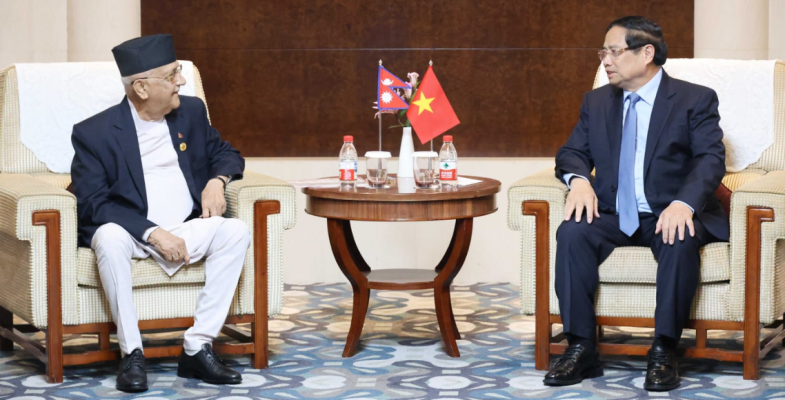 काठमाडौं । प्रधानमन्त्री केपी शर्मा ओली र भियतनामका प्रधानमन्त्री फाम मिन चिङबीच भेटवार्ता भएको छ।