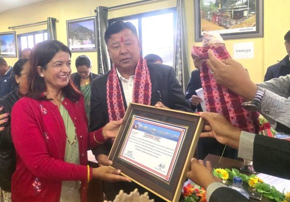 फलस्वरुप जिल्ला समन्वय समिति दोलखाको १०औं जिल्ला सभाको अवसरमा गाउँपालिकालाई सम्मानित भएको छ ।