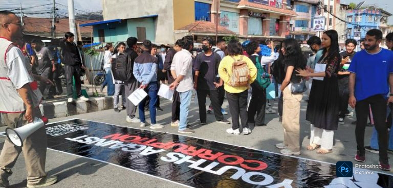 ‘असन्तुष्टि चरम छ, नेताको गोजी गरम छ’, ‘जेनजी चिच्याउँछ, भ्रष्टहरूलाई गिज्याउँछ’, ‘कता हिंडेको ट्याक्स लुटेर रु’, ‘स्वतन्त्र आवाज हाम्रो अधिकार’, स्टप करप्सन ९भ्रष्टाचार रोक० लगायतका नारा लेखेका प्लेकार्ड उनीहरूले बोकेका छन् ।