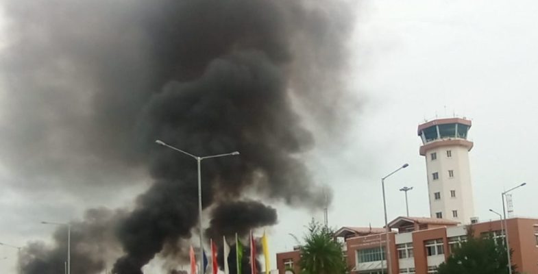 सयौँ संख्यामा विमानस्थलभित्र प्रवेश गरेका प्रदर्शनकारीले तोडफोडसँगै आगजनी गरेका हुन्।