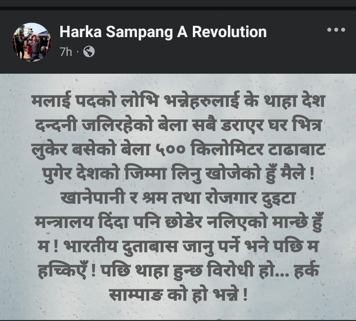 प्रधानमन्त्री नै बन्छु भनेर धरानबाट काठमाडौँ आई हल्लीखल्ली गरेका साम्पाङ यसबीच बालुवाटार पुगेर गृृहमन्त्री बनाउन माग गरेको खबर पनि बाहिएको थियो तर उनले त्यसलाई झुट भनेका थिए।