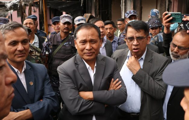 जलेर ध्वस्त  संसद भवनको निरीक्षणमा पुगे ३ जना मन्त्रीहरू