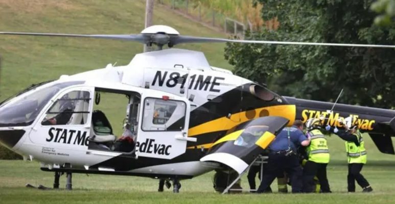 घटनास्थलबाट प्राप्त तस्बिरमा घाइते प्रहरी अधिकारीलाई मेडिकल हेलिकप्टरबाट उपचारका लागि अस्पताल लगिएको देखिन्छ।