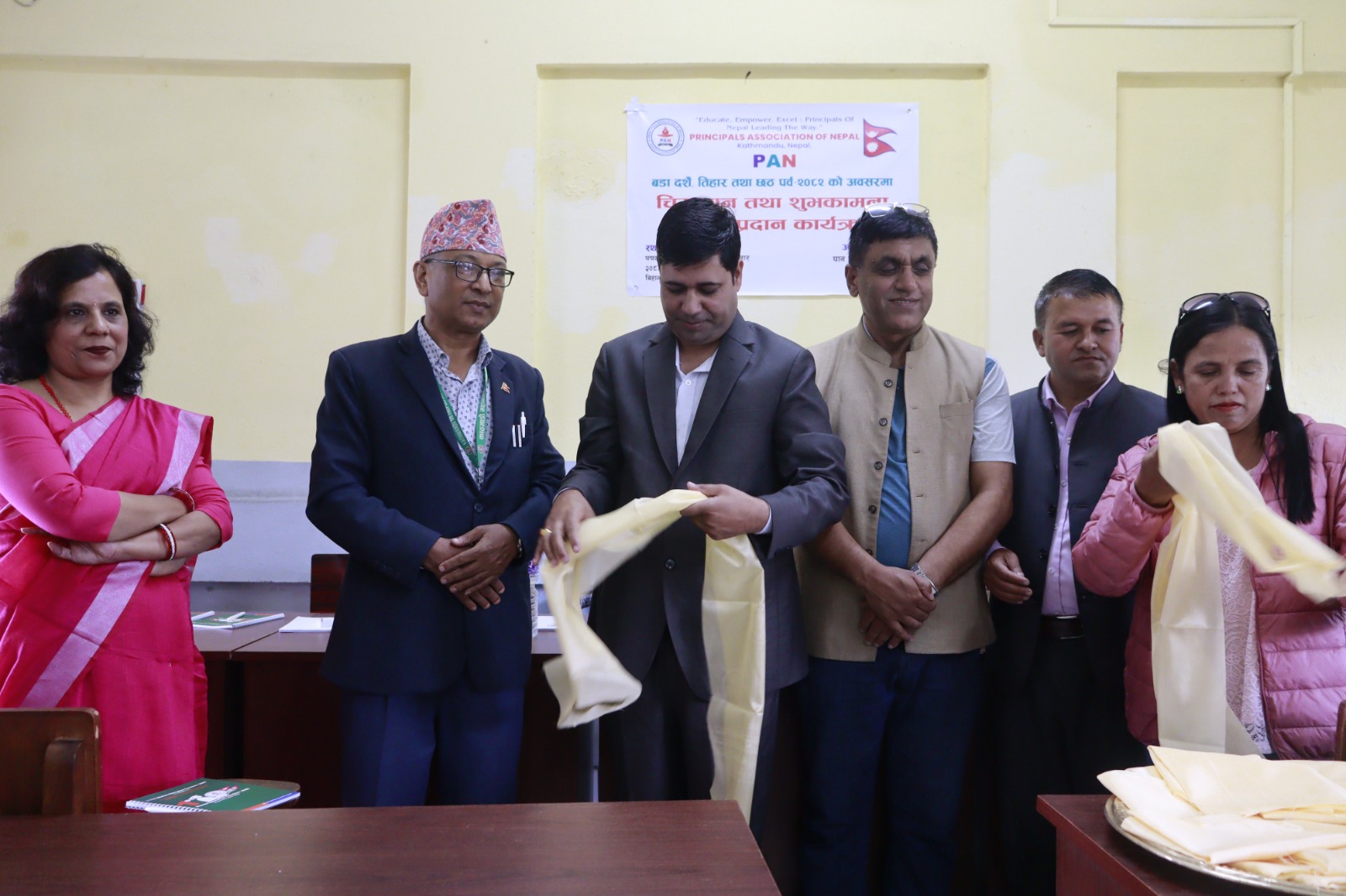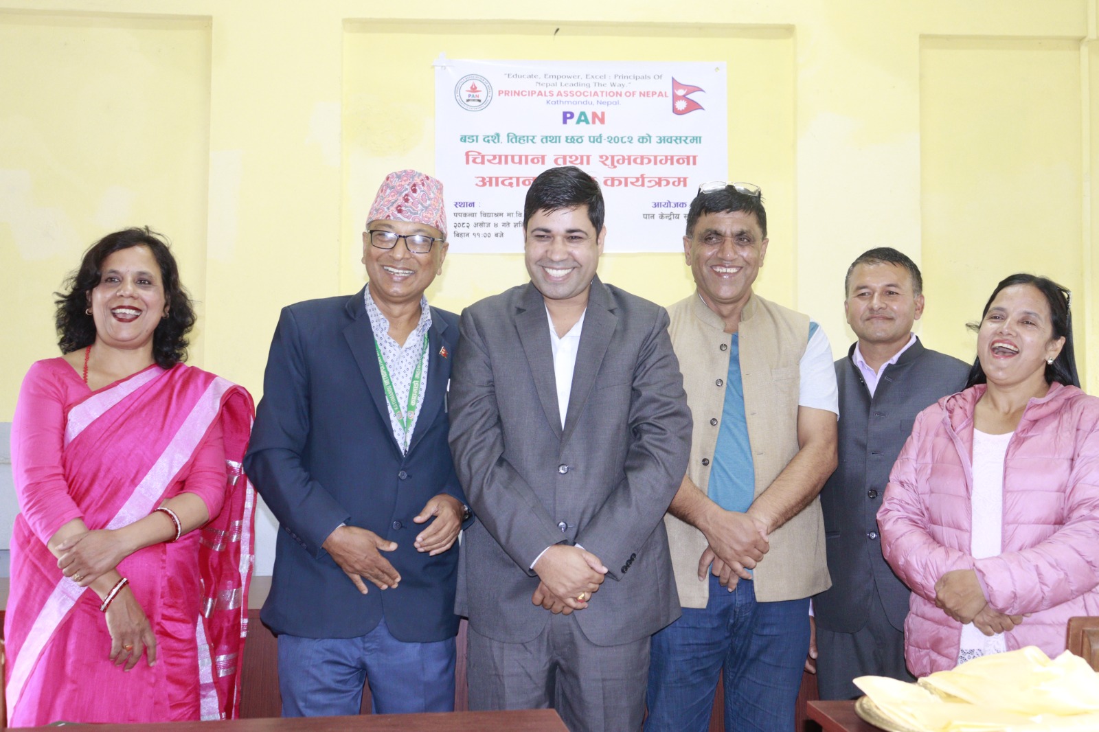 यस्तै प्रिन्सिपल्स एशोसिएसन अफ नेपाल (पान) का अध्यक्ष सुदाम प्रसाद गौतमले बडा दशैं, तिहार तथा छठ पर्व २०८२ को उपलक्ष र नवनियुक्त प्रधानाध्यापकहरुलाई बधाइ तथा शुभकामना व्यक्त गर्दै सफल कार्यकालको शुभकामना दिनु भएको थियो ।