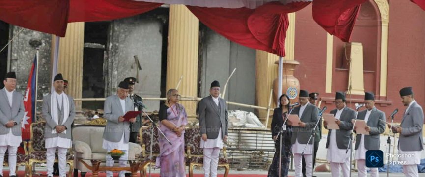 बाठमाडौं । नवनियुक्त चार मन्त्रीले शपथग्रहण गरेका छन् । राष्ट्रपति निवास शितलनिवासमा आयोजित विशेष समारोहमा राष्ट्रपति रामचन्द्र पौडेलले शपथ ग्रहण गराएका हुन् ।