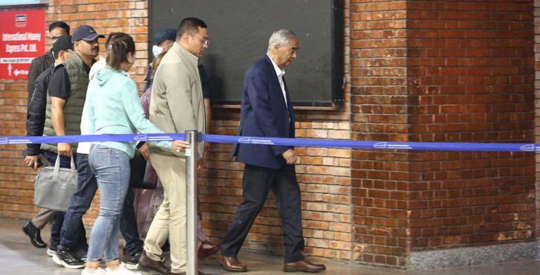 पार्टीमा उपसभापति पूर्णबहादुर खड्कालाई कार्यवाहक दिएर देउवा केही दिनदेखि नै स्वास्थ्य लाभ गरिरहेका थिए। देउवा दम्पतीले विमानस्थलमा भिआइपी कक्ष प्रयोग गरेनन्।