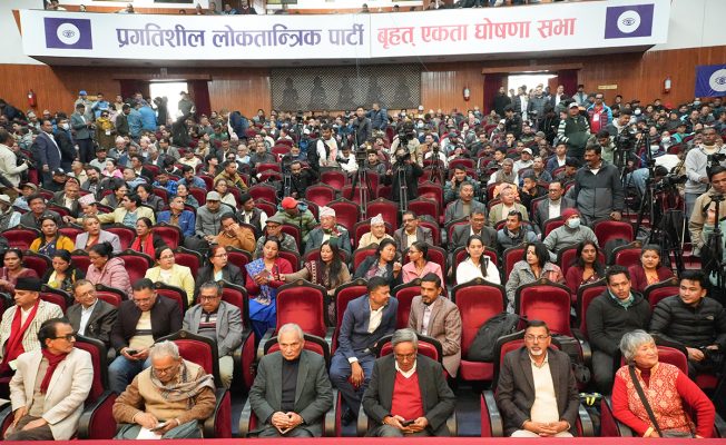 काठमाडौं । नेताहरू बाबुराम भट्टराई, जनार्दन शर्मा र सन्तोष परियारले गठन गरेको प्रगतिशील लोकतान्त्रिक पार्टीको एकता घोषणासभा सुरु भएको छ ।