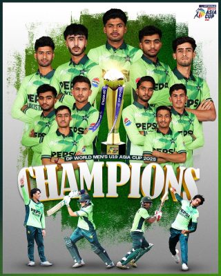 काठमाडौं । भारतलाई १ सय ९१ रनले हराउँदै पाकिस्तानले एसीसी १९ वर्षमुनिको एशिया कप क्रिकेटको उपाधि जितेको छ ।
