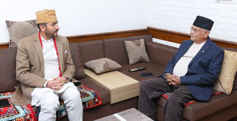 एमाले अध्यक्ष ओलीसँग सञ्चारमन्त्री खरेलको भेटवार्त
