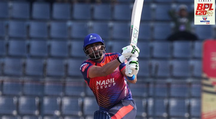 राजशाहीबाट ब्याटिङको अवसर समेत पाएका नेपाली राष्ट्रिय टिमका स्पिनर सन्दीप लामिछानले पाँच रन बनाए ।