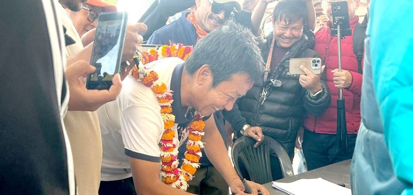 मनोनयन दर्ता गराउन उनी समर्थकहरूसहित आयोगको कार्यालय पुगेका थिए ।