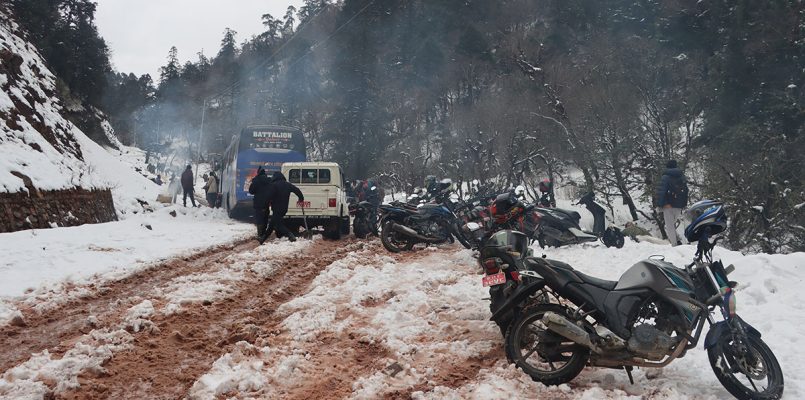 रुकुम पूर्वमा हिमपातले मध्यपहाडी लोकमार्ग अवरुद्ध, गाडी र यात्रुको उद्धार हुँदै