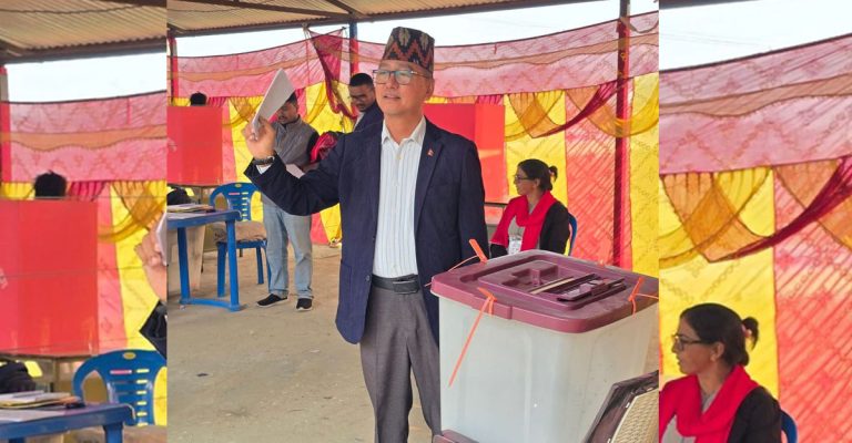 काठमाडौं । राष्ट्रिय प्रजातन्त्र पार्टी (राप्रपा)का अध्यक्ष तथा झापा निर्वाचन क्षेत्र नं ३ का प्रतिनिधिसभा सदस्य उम्मेदवार राजेन्द्र लिङ्देनले हल्दिबारी–१ स्थित वडा कार्यालय मतदान केन्द्रबाट मतदान गरेका छन्।
