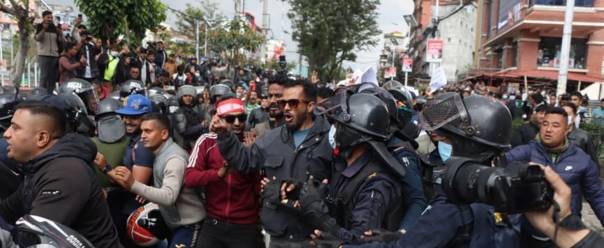 काठमाडौं । काठमाडौँमा प्रदर्शनमा उत्रिएका नेकपा(एमाले)का कार्यकर्ता र प्रहरीबीच विभिन्न स्थानमा घम्साघम्सी भएको छ।