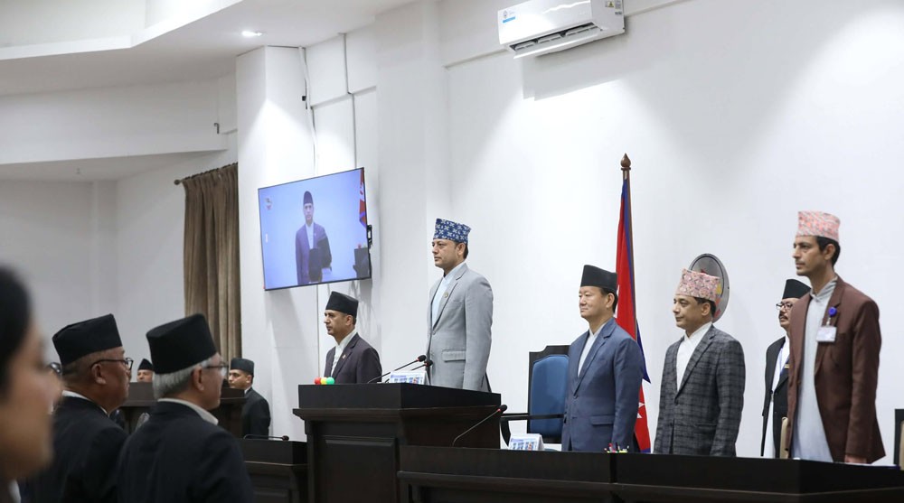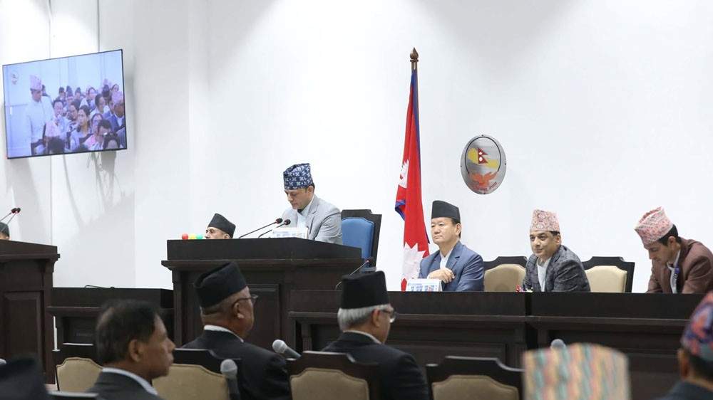 सिंहदरबारस्थित नवनिर्मित संसद भवनको अस्थायी हलमा बैठक चलिरहेको छ।