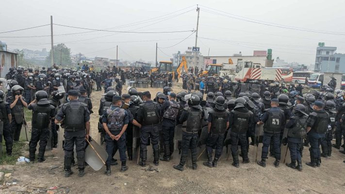 बस्ती भत्काउनुअघि त्यहाँ बाक्लो मात्रामा सुरक्षाकर्मी परिचालन गरिएको छ ।