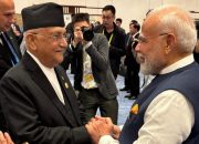 काठमाडौं । चीन भ्रमणमा रहेका केपी शर्मा ओली र भारतीय प्रधानमन्त्री नरेन्द्र मोदीबीच भेट भएको छ। उनीहरूबीच तियानजिनमा साइडलाइन भेट भएको हो। दुई समकक्षीबीचको भेटको तस्बिर मोदीले आफ्नो एक्समार्फत सार्वजनिक गरेका छन्। तियायानजिनमा नेपालका प्रधानमन्त्री...बाँकी August 31, 2025 |